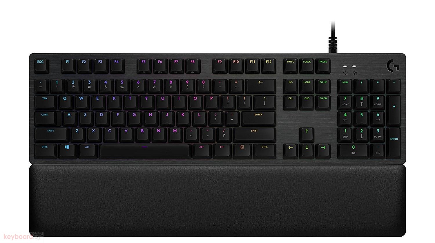 G513 е висок клас геймърска клавиатура, осигуряваща скорост на отчитане от 1 мс и включваща усъвършенстван механичен суич GX Brown Mechanical Switch. Пълният спектър на RGB, комбиниран с технологията LIGHTSYNC, с помоща на която може да си създадете ваш собствен ефект или да го синхронизирате с най-новите игри. Шасито е изработено от алуминиево-магнезиева сплав, което прави клавиатурата много здрава, издържлива и невероятно красива.