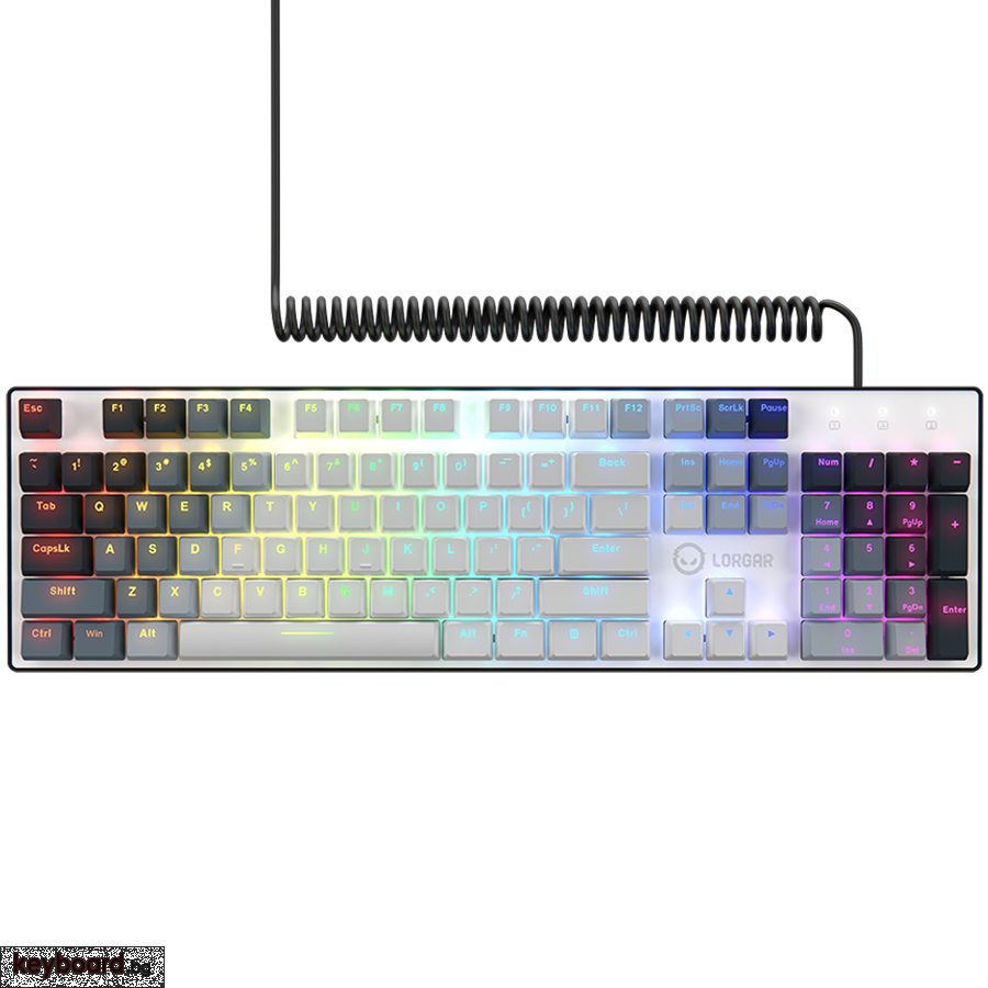 LORGAR Azar 514, Wired mechanical gaming keyboard, RGB backlight, 1680000 colour variations, 18 modes, keys number: 104, 50M clicks, linear dream switches, spring cable up to 3.4m, ABS plastic+metal, magnetic cover, 450*136*39mm, 1.17kg, white, EN layout